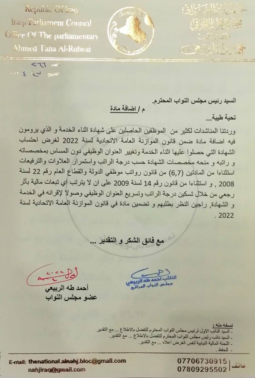 اخبار العراق بالوثيقة… الربيعي يرفع مناشدات الموظفين الحاصلين على الشهادة اثناء الخدمة لغرض استثنائهم من ضوابط التسكين في 28/04/2022 جريدة الناصرية الالكترونية : بالوثيقة الربيعي يرفع مناشدات الموظفين الحاصلين على الشهادة اثناء الخدمة لغرض استثنائهم من ضوابط التسكين. شارك هذا الموضوع: النقر للمشاركة على X (فتح في نافذة جديدة) X انقر للمشاركة على فيسبوك (فتح في نافذة جديدة) فيس بوك مرتبط أكمل القراءة