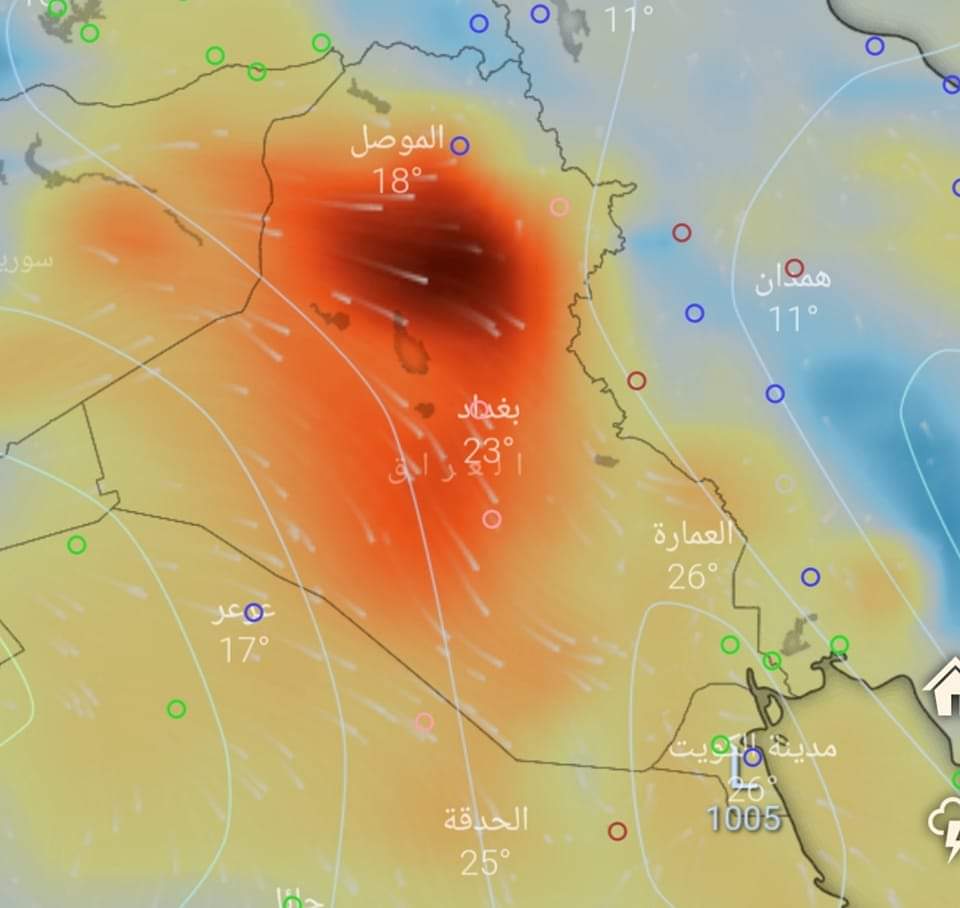 ويغطي التراب سماء العاصمة العراقية بغداد وبشكل كامل منذ ليل امس، وذلك بعد هبوب العاصفة الترابية من الحدود الغربية حيث صحراء محافظة الأنبار، في وقت دخلت مستشفيات العاصمة حالة الانذار لاستقبال الاف الحالات من المصابين بالاختناق.