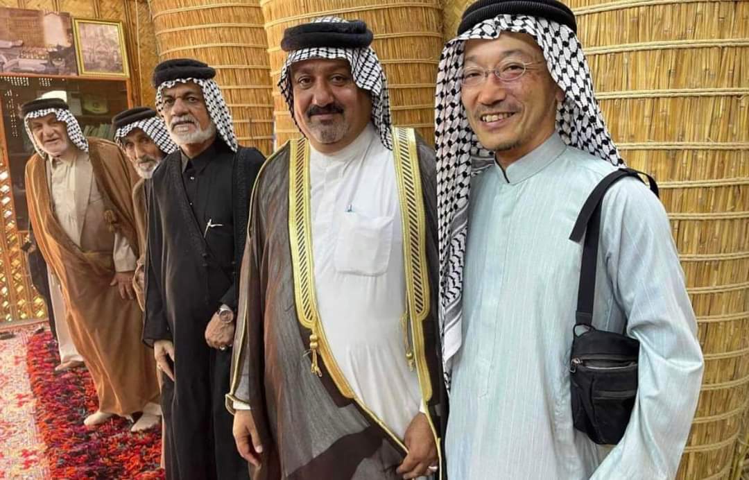 بالصور…رحالة ياباني يصل إلى اهوار الجبايش ويرتدي الزي العربي
