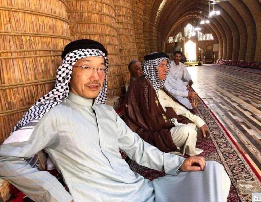 وصل اليوم السبت الرحالة الياباني ” هيديوكي تكانو ” الى اهوار الجبايش بعد عشرين يوم من السفر الى عدة اماكن ليشارك السكان المحليين في الاهوار بالزي العربي حيث تنقل بين مضايفها .