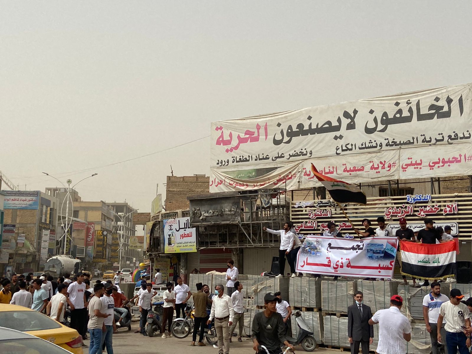 تظاهر العشرات من الكسبة والخريجين اليوم الثلاثاء وسط ساحة الحبوبي في الناصرية مطالبين بفرص عمل وتعيينات على المؤسسات الحكومية .