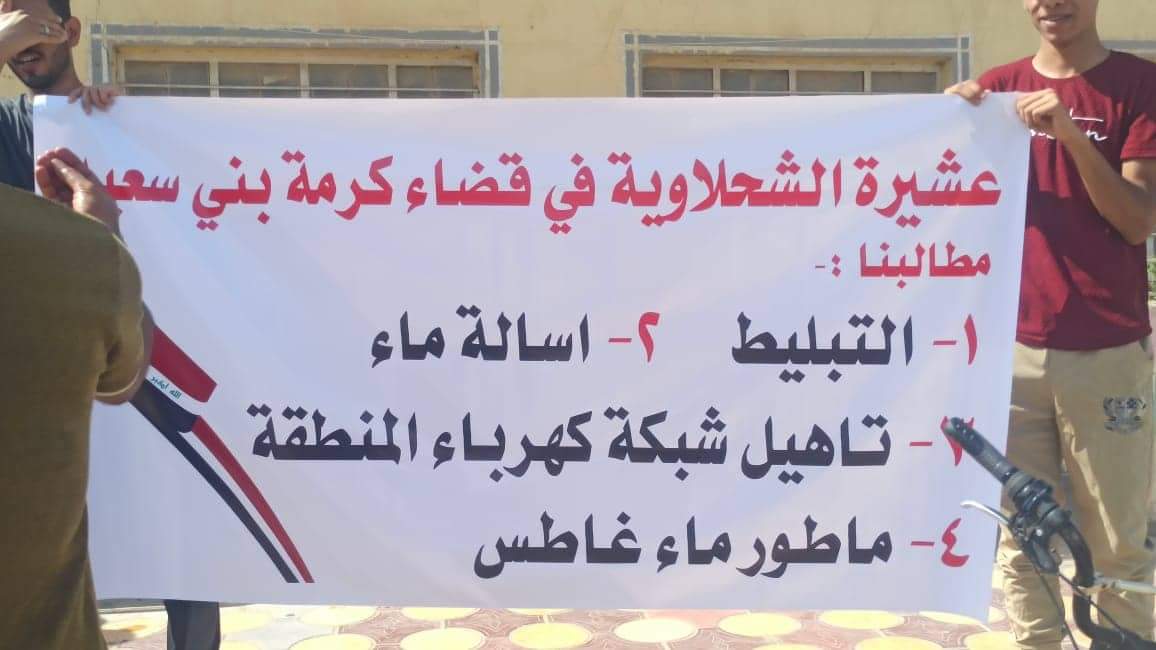 أخبار الناصرية بالصور ..أهالي قضاء كرمة بني سعيد يتظاهرون من أجل الخدمات في 02/06/2022 جريدة الناصرية الالكترونية: تظاهر العشرات من اهالي قضاء كرمة بني سعيد اليوم الخميس مطالبين بتوفير الخدمات من تبليط واسالة ماء وتأهيل شبكة الكهرباء. شارك هذا الموضوع: النقر للمشاركة على X (فتح في نافذة جديدة) X انقر للمشاركة على فيسبوك (فتح في نافذة جديدة) فيس بوك مرتبط أكمل القراءة