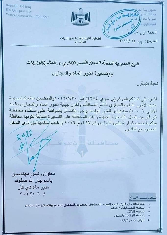 أخبار الناصرية بالوثيقة….ذي قار تخاطب المديرية العامة للماء بإستثنائها من التسعيرة الجديدة للجباية في 21/06/2022 جريدة الناصرية الالكترونية : بالوثيقة ذي قار تخاطب المديرية العامة للماء بإستثنائها من التسعيرة الجديدة للجباية. شارك هذا الموضوع: النقر للمشاركة على X (فتح في نافذة جديدة) X انقر للمشاركة على فيسبوك (فتح في نافذة جديدة) فيس بوك مرتبط أكمل القراءة