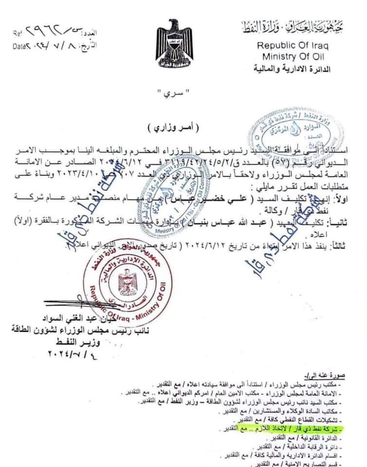 أخبار الناصرية بالوثيقة..أمر اعفاء مدير عام شركة نفط ذي قار في 08/07/2024 جريدة الناصرية الالكترونية: بالوثيقة..أمر اعفاء مدير عام شركة نفط ذي قار شارك هذا الموضوع: النقر للمشاركة على X (فتح في نافذة جديدة) X انقر للمشاركة على فيسبوك (فتح في نافذة جديدة) فيس بوك مرتبط أكمل القراءة