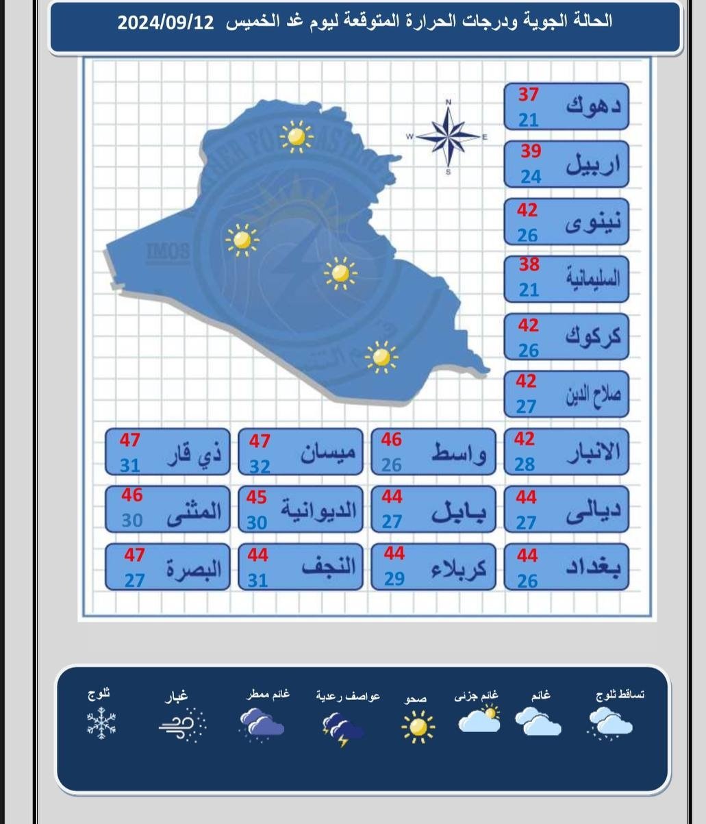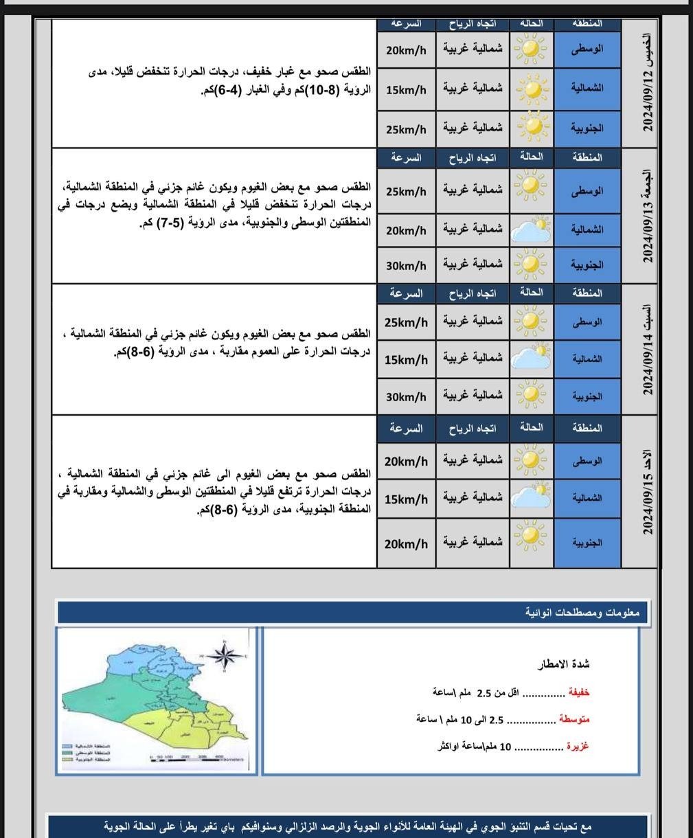اخبار العراق بدءاً من الغد… العراق على موعد مع انخفاض بدرجات الحرارة في 11/09/2024 جريدة الناصرية الالكترونية: نشرت هيئة الأنواء الجوية، اليوم الأربعاء، تفاصيل حالة الطقس في البلاد للأيام المقبلة، فيما توقعت انخفاضاً في درجات الحرارة بدءاً من الغد. CREATOR: gd-jpeg v1.0 (using IJG JPEG v62), quality = 85 CREATOR: gd-jpeg v1.0 (using IJG JPEG v62), quality = 85 شارك هذا الموضوع: النقر للمشاركة على X (فتح في نافذة جديدة) X انقر للمشاركة على فيسبوك (فتح في نافذة جديدة) فيس بوك مرتبط أكمل القراءة