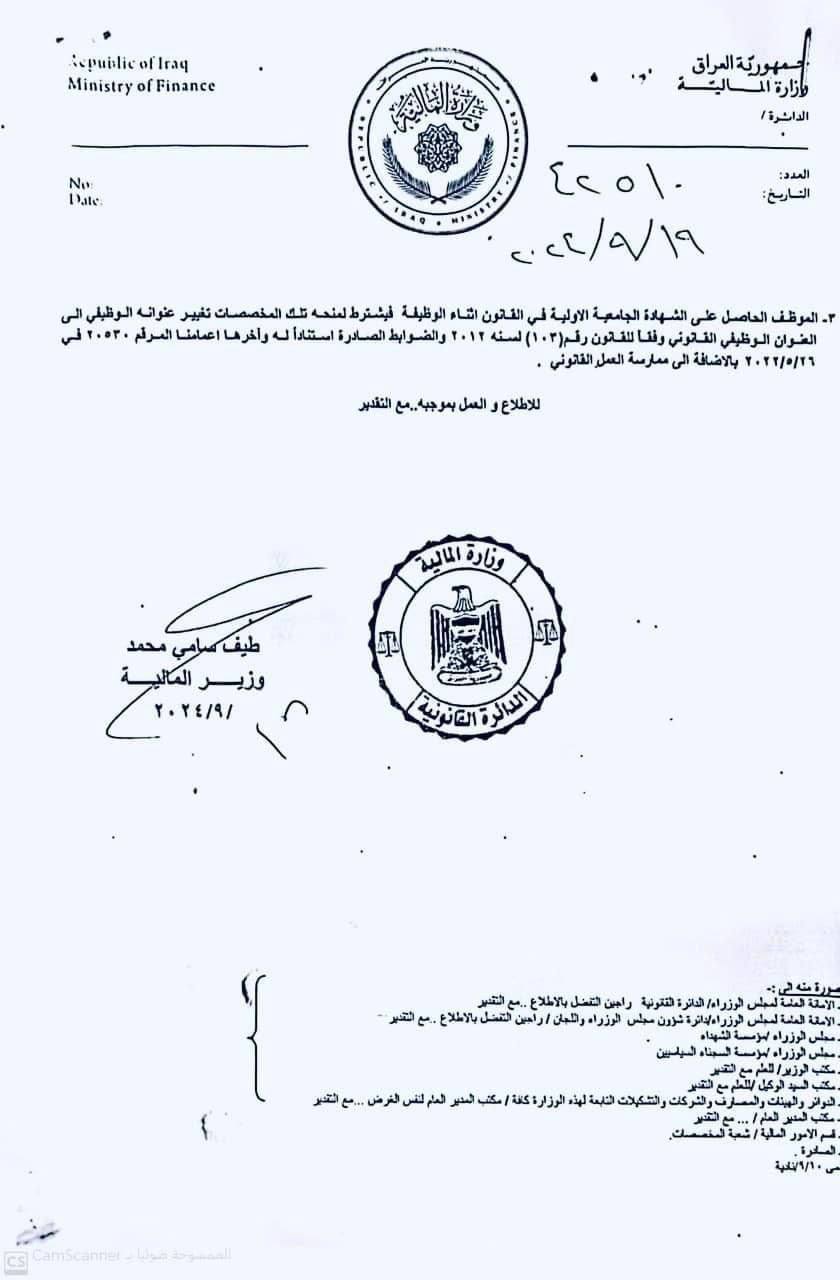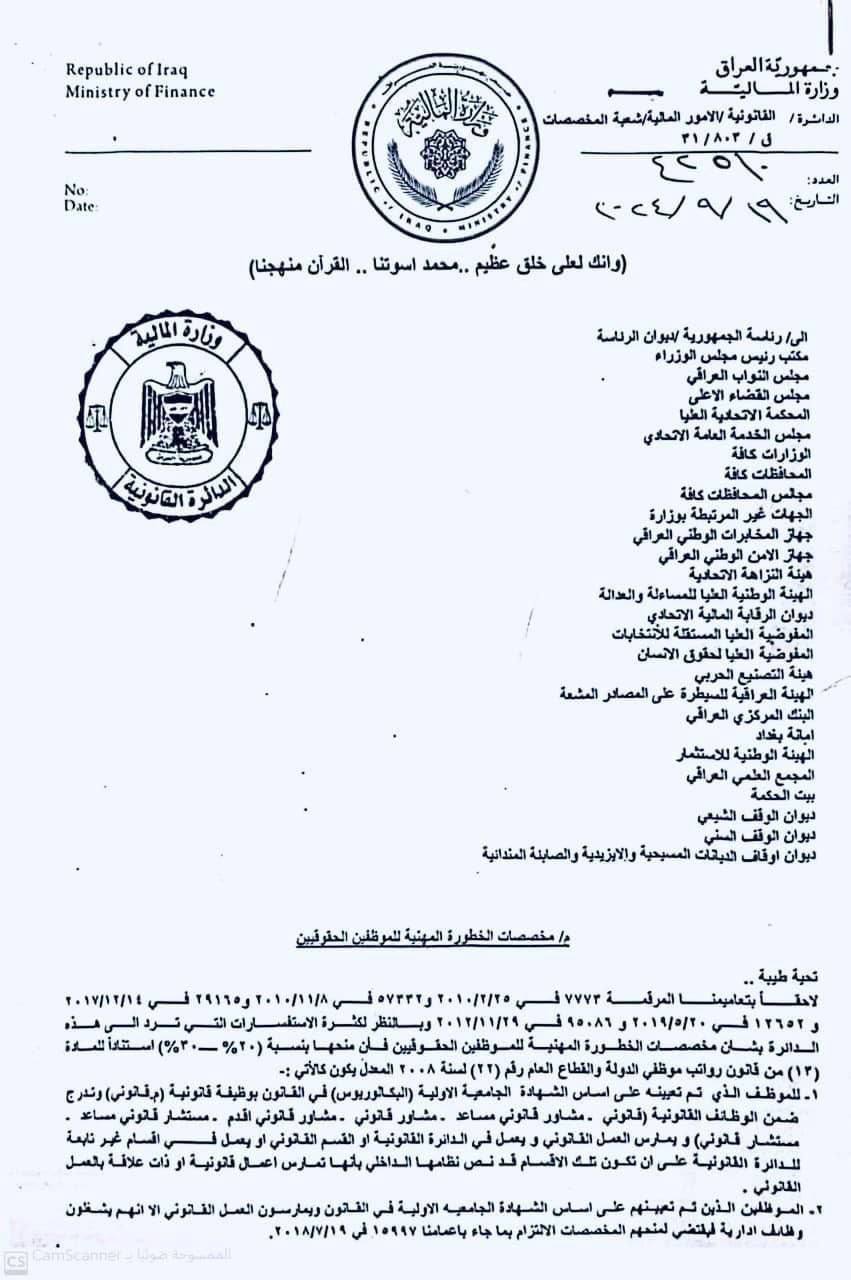 اخبار العراق وزارة المالية تصدر إعماماً بشأن احتساب مخصصات الخطورة المهنية للموظفين الحقوقيين في 22/10/2024 جريدة الناصرية الالكترونية: أصدرت وزارة المالية، اليوم الثلاثاء، إعماماً بشأن احتساب مخصصات الخطورة المهنية للموظفين الحقوقيين. شارك هذا الموضوع: النقر للمشاركة على X (فتح في نافذة جديدة) X انقر للمشاركة على فيسبوك (فتح في نافذة جديدة) فيس بوك مرتبط أكمل القراءة