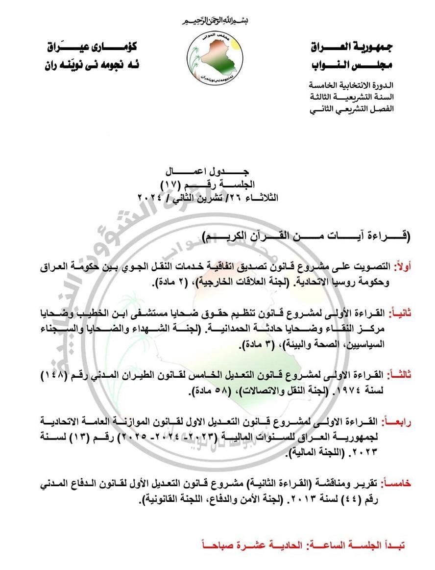 اخبار العراق بينها الموازنة… جدول اعمال البرلمان ليوم الثلاثاء المقبل في 24/11/2024 جريدة الناصرية الالكترونية: يعقد مجلس النواب، بعد غد الثلاثاء جلسة اعتيادية. ويتضمن جدول اعمال الجلسة القراءة الأولى لتعديل قانون الموازنة المالية الثلاثية. CREATOR: gd-jpeg v1.0 (using IJG JPEG v80), default quality شارك هذا الموضوع: النقر للمشاركة على X (فتح في نافذة جديدة) X انقر للمشاركة على فيسبوك (فتح في نافذة جديدة) فيس بوك مرتبط أكمل القراءة