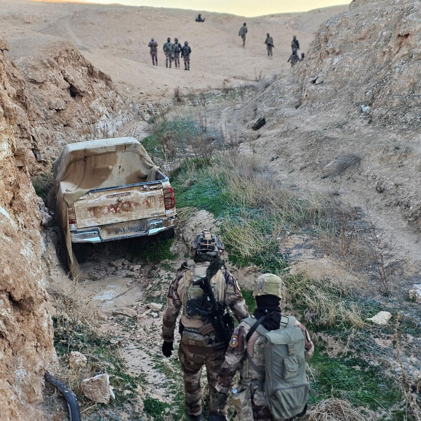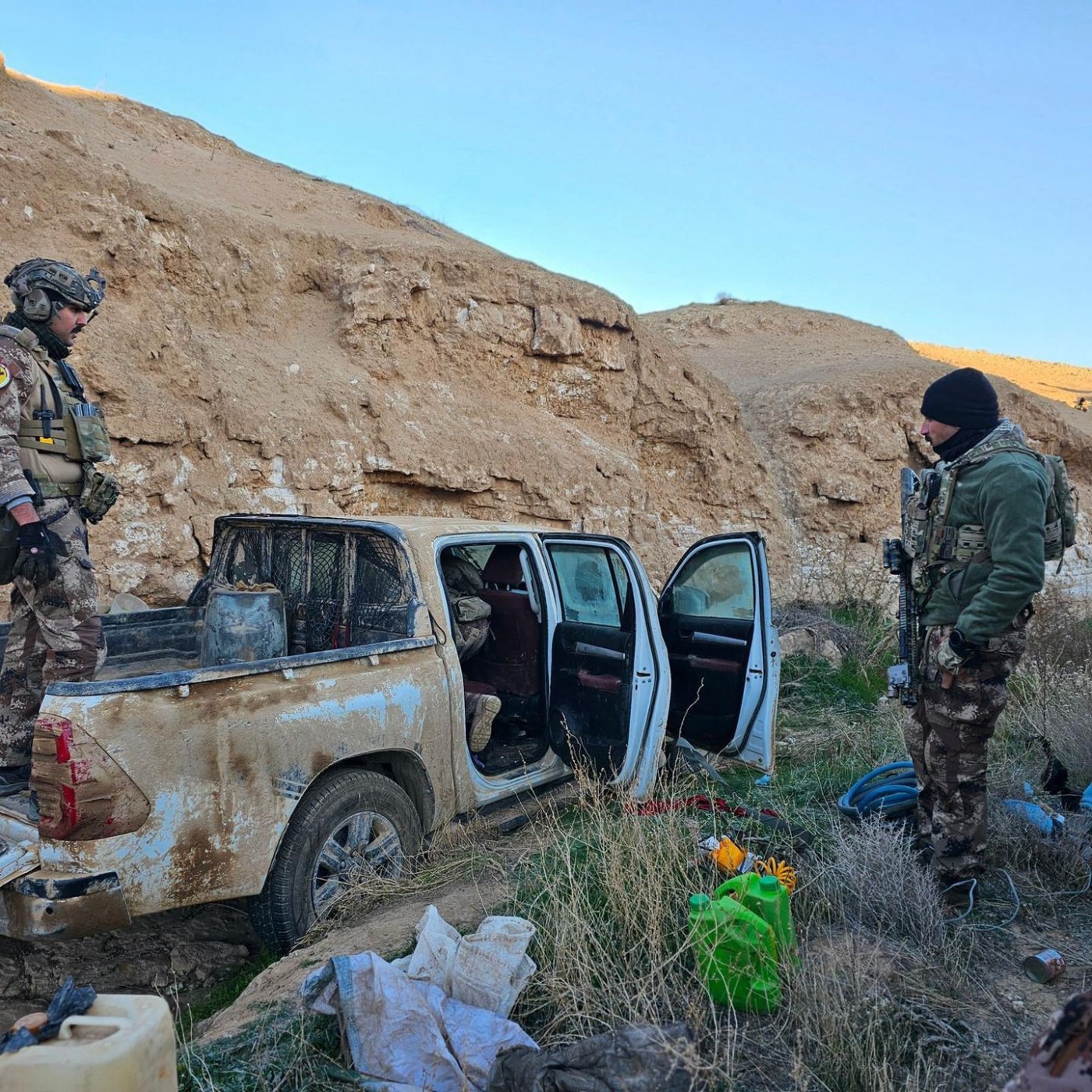 وأوضح، أن “بعملية نوعية لأبطال جهاز مكافحة الإرهاب وفقاً لمعلومات استخبارية دقيقة عن وجود عجلة مفخخة في قضاء راوة محافظة الأنبار وبعد تأكيد المعلومات من خلال الاستطلاع الجوي تم تنفيذ واجب دهم وتفتيش وتم ضبط عجلة نوع تويوتا (بيك آب) مفخخة بواسطة اربع جلكانات من المواد المتفجرة محلية الصنع تم تفجيرها من قبل سرية الهندسة لأبطال جهازنا”.