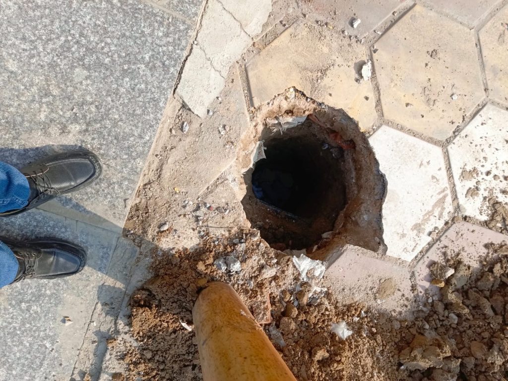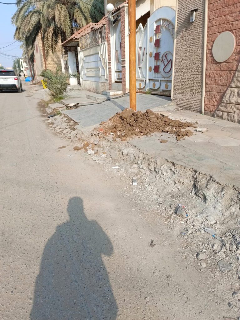 ووثق الأهالي بصور حصرية حصلت عليها صحيفة الناصرية الإلكترونية كيفية الحفر التي أصبح موقعها بالقرب من انبوب ماء رئيسي بالإضافة لوجود أنابيب مياه مغذية للمنازل.