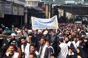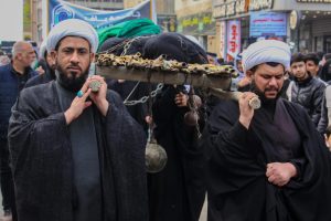 وشهد صباح اليوم الاحد، عرضًا مسرحيًا ومراسم تشييع رمزي لنعش الإمام الكاظم (عليه السلام)، نظمته هيئة الشعائر والمواكب الحسينية في مكتب المرجع الديني الشيخ محمد اليعقوبي (دام ظله) ، بالتعاون مع مؤسسة فيض الكوثر وخدمة جامع الإمام الجواد.