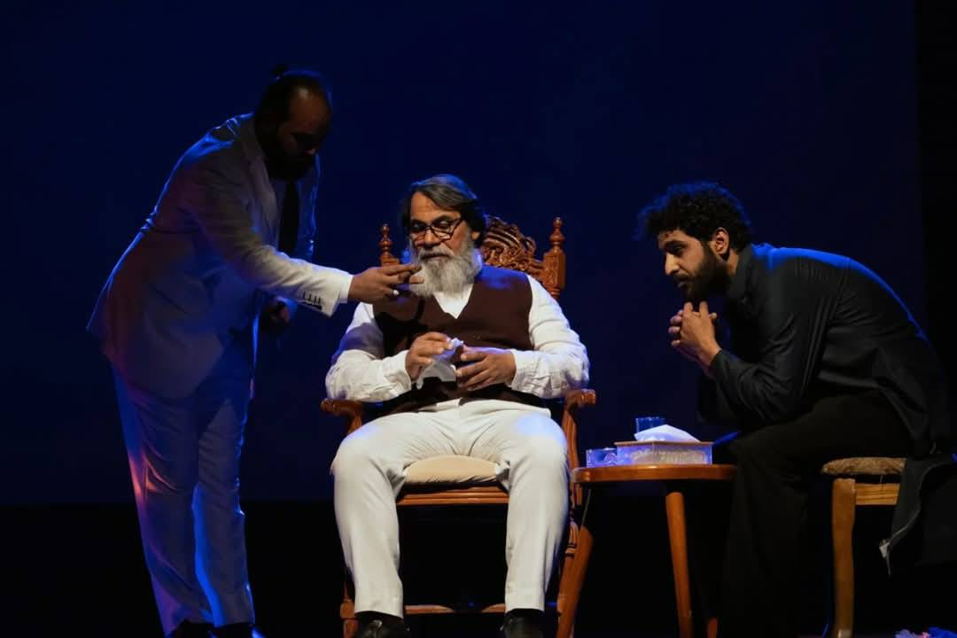وأشار البراك الى أن “المسرحية سبق لها وأن قُدّمت في إفتتاح مهرجان الحبوبي الإبداعي الدولي السابع يوم 28 / 11 / 2024 ، وتُعد هذه هي التجربة الثالثة بعد مسرحيتي ( ميت مات ) و ( صفصاف ) التي يجمع فيها الكاتب علي عبد النبي الزيدي بين كتابة النص المسرحي وإخراجه”.