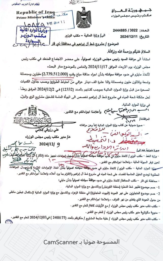 السوداني يوافق على تخصيص مبالغ مالية بشأن حل مشكلة شحة المياه في شط ال ابراهيم وتنظيف شط الشطرة وجدول العبودة