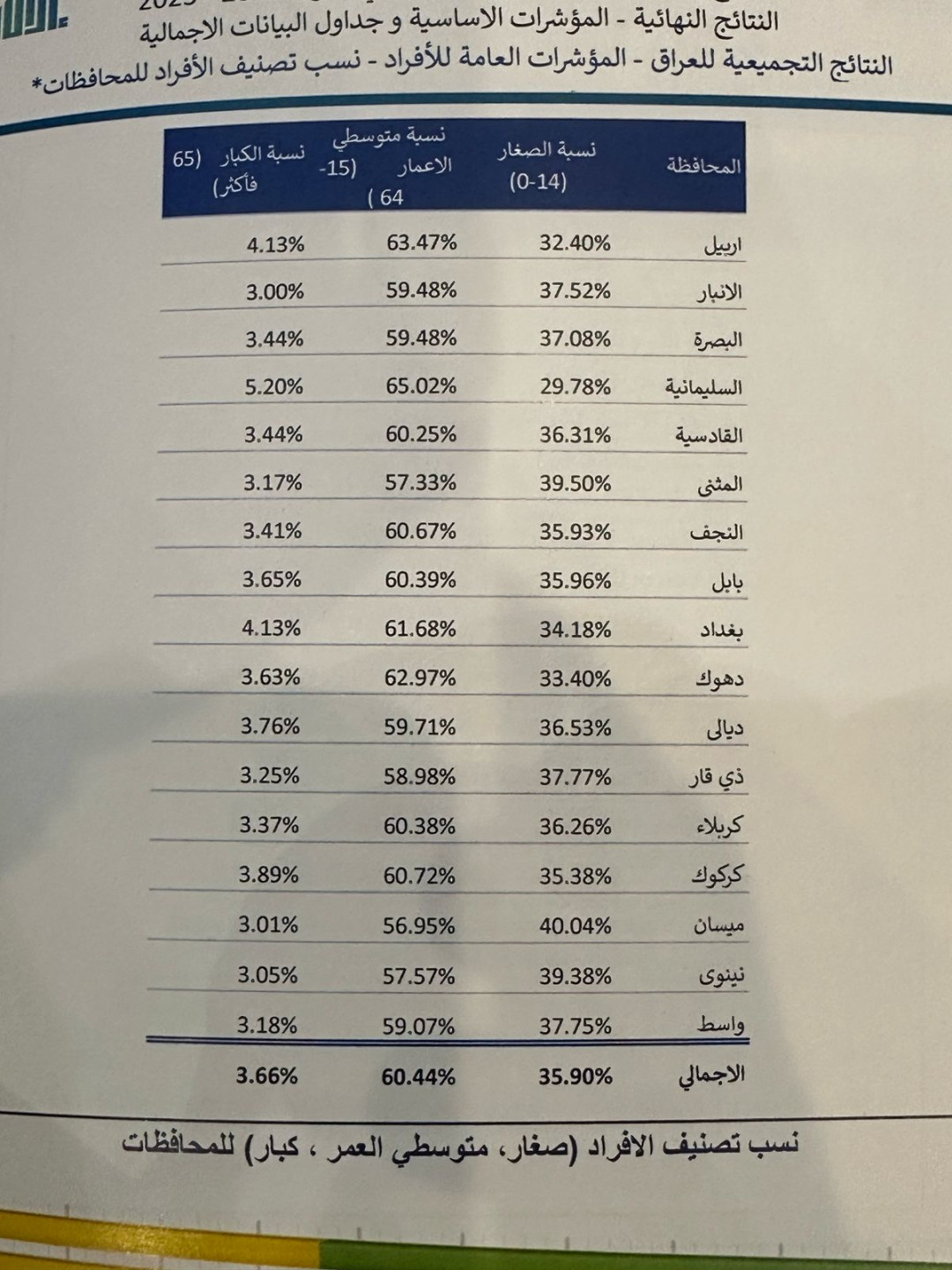أما معدل الخصوبة الكلي في العراق فيبلغ 3.9%، بينما ينخفض في إقليم كوردستان إلى 3.5%.