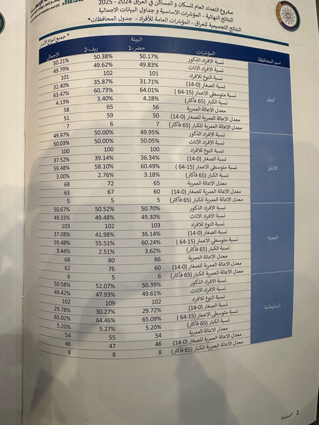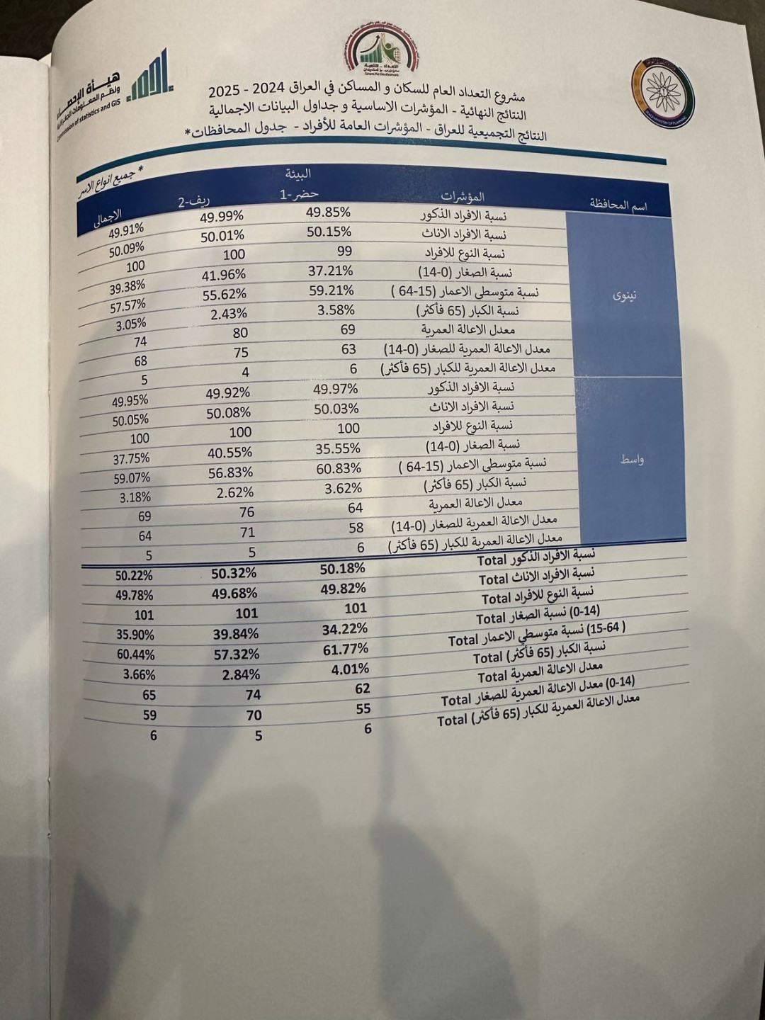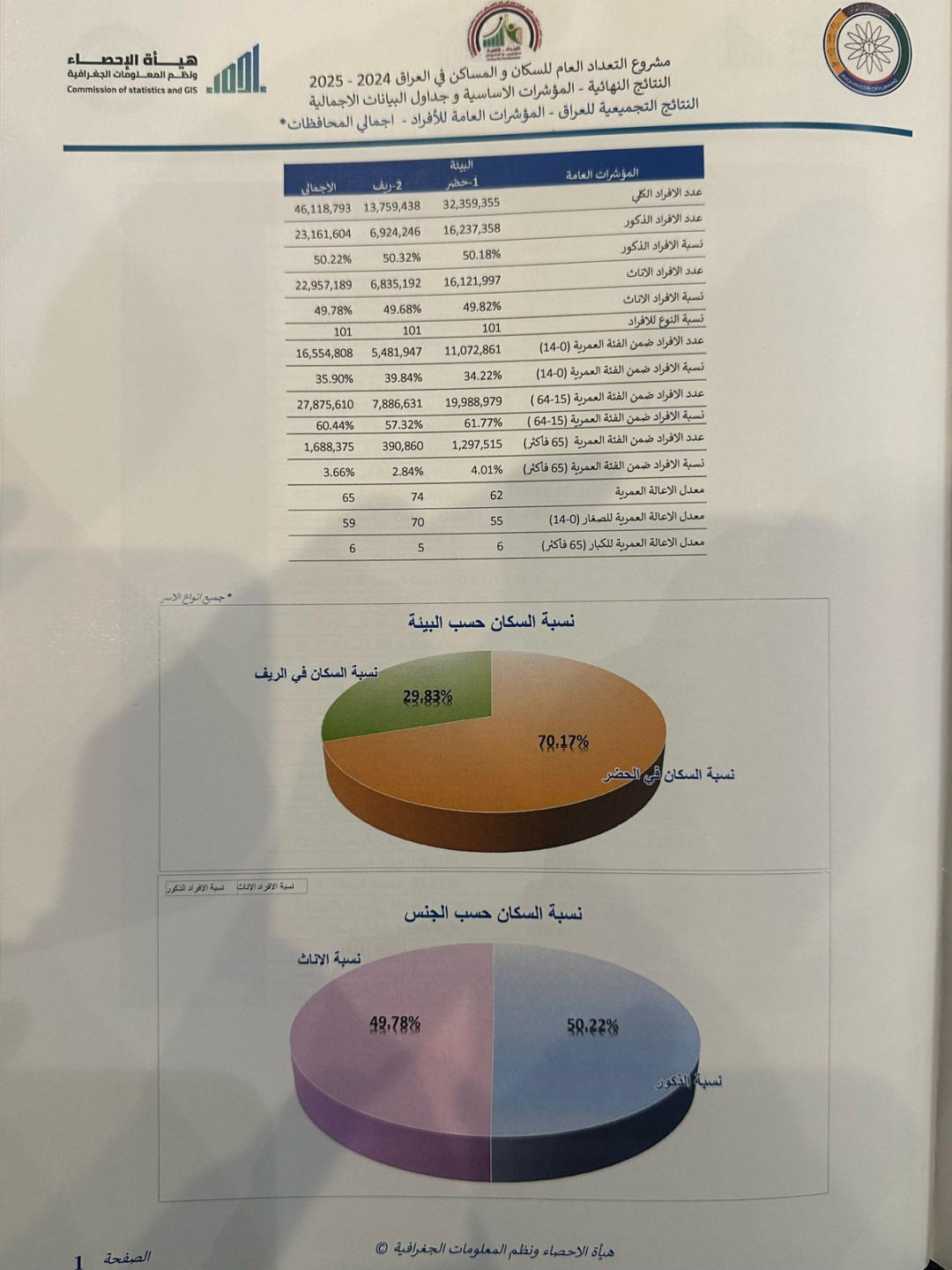 الإعلان النهائي للتعداد العام… سكان العراق يبلغون (46) مليوناً و(118) ألف نسمة