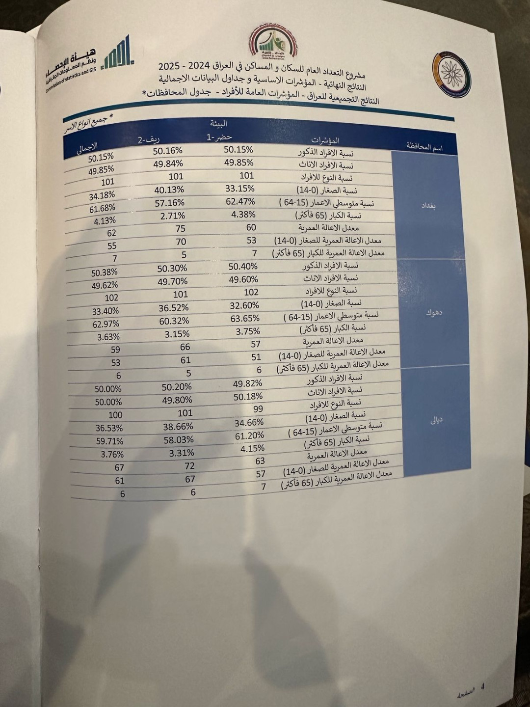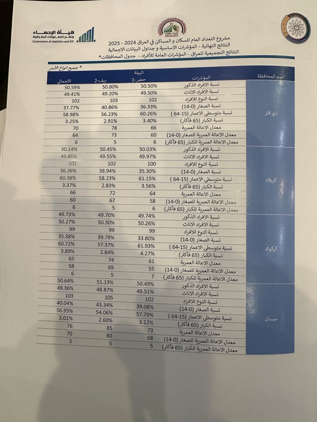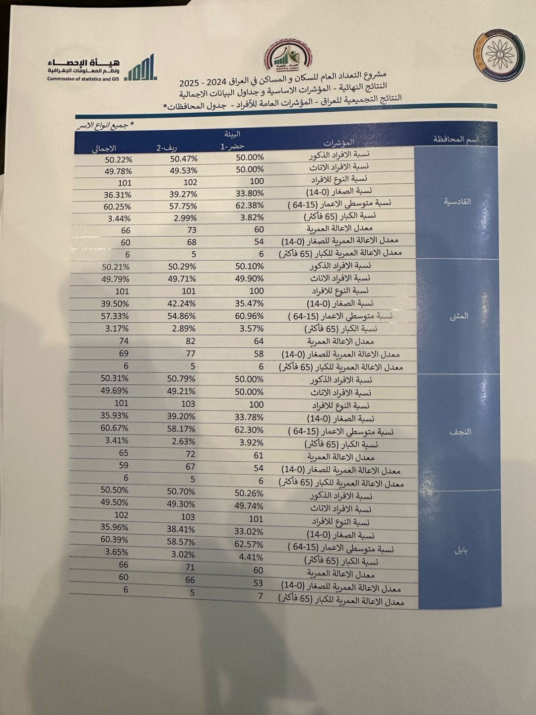 الإعلان النهائي للتعداد العام… سكان العراق يبلغون (46) مليوناً و(118) ألف نسمة