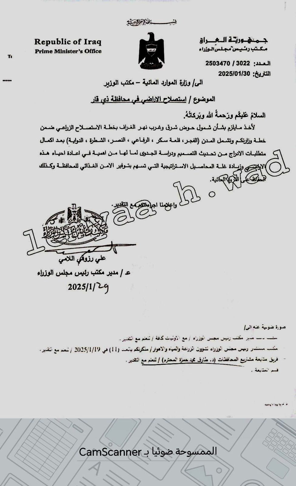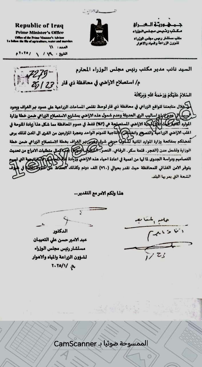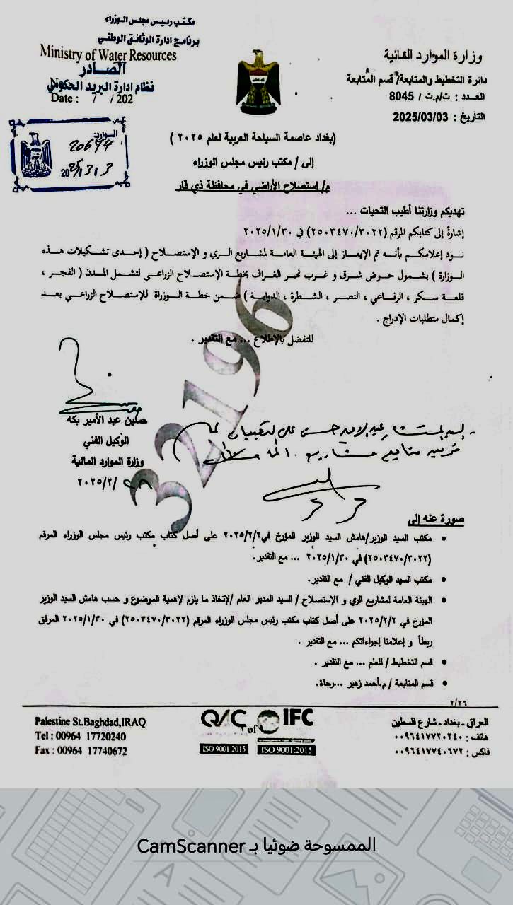 بالوثائق…السوداني يوافق على إستصلاح أراضي حوض عمود الغراف في ذي قار