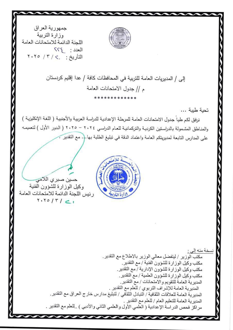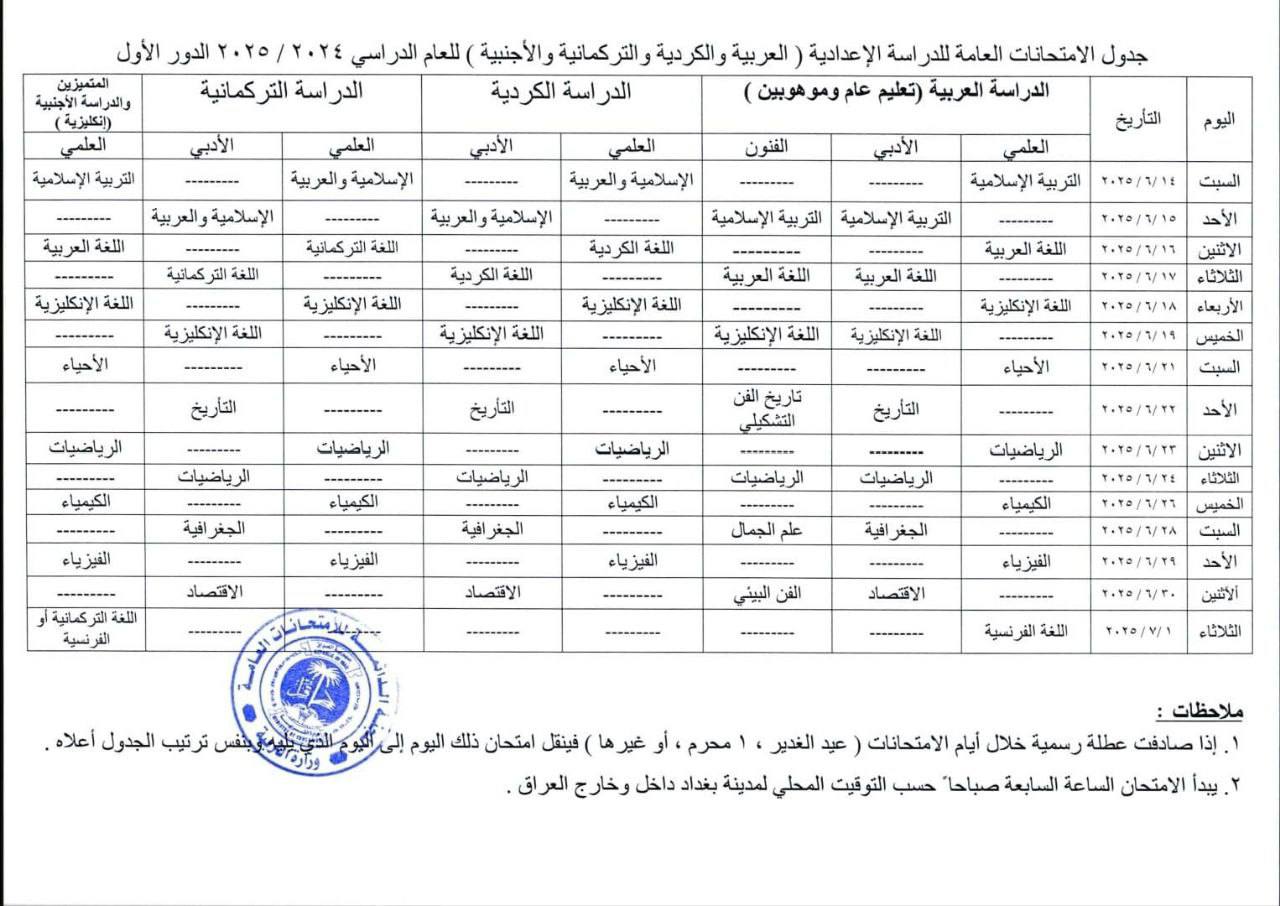 اخبار العراق التربية تنشر جدول امتحانات الدور الأول للسادس الاعدادي في 20/03/2025 صحيفة الناصرية الالكترونية: أعلنت وزارة التربية، عن جدول الامتحانات الوزارية الدور الأول / لمرحلة السادس الاعدادي للعام الدراسي {2024-2025}. شارك هذا الموضوع: النقر للمشاركة على X (فتح في نافذة جديدة) X انقر للمشاركة على فيسبوك (فتح في نافذة جديدة) فيس بوك مرتبط أكمل القراءة