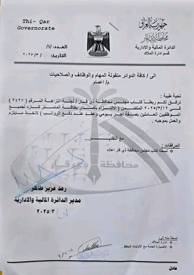 كشفت وثيقة صادرة عن دائرة صحة ذي قار، عن إلغاء أوامر ترفيع 2000 موظف “بأثر رجعي” لعدم إكمال وثائقهم الدراسية.