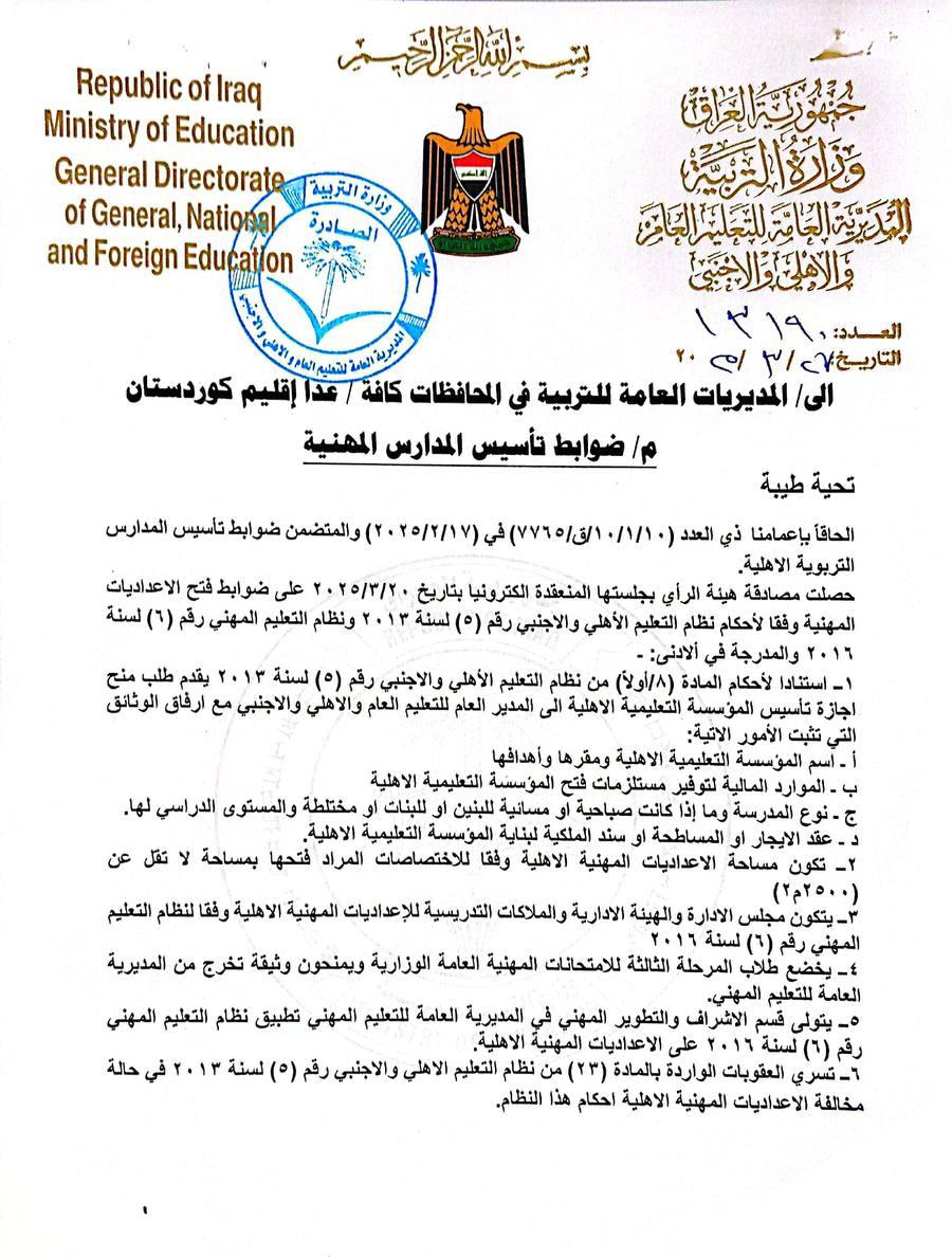 التربية تُحدد ضوابط تأسيس المدارس المهنية الأهلية وفقاً لتصويت هيئة الرأي