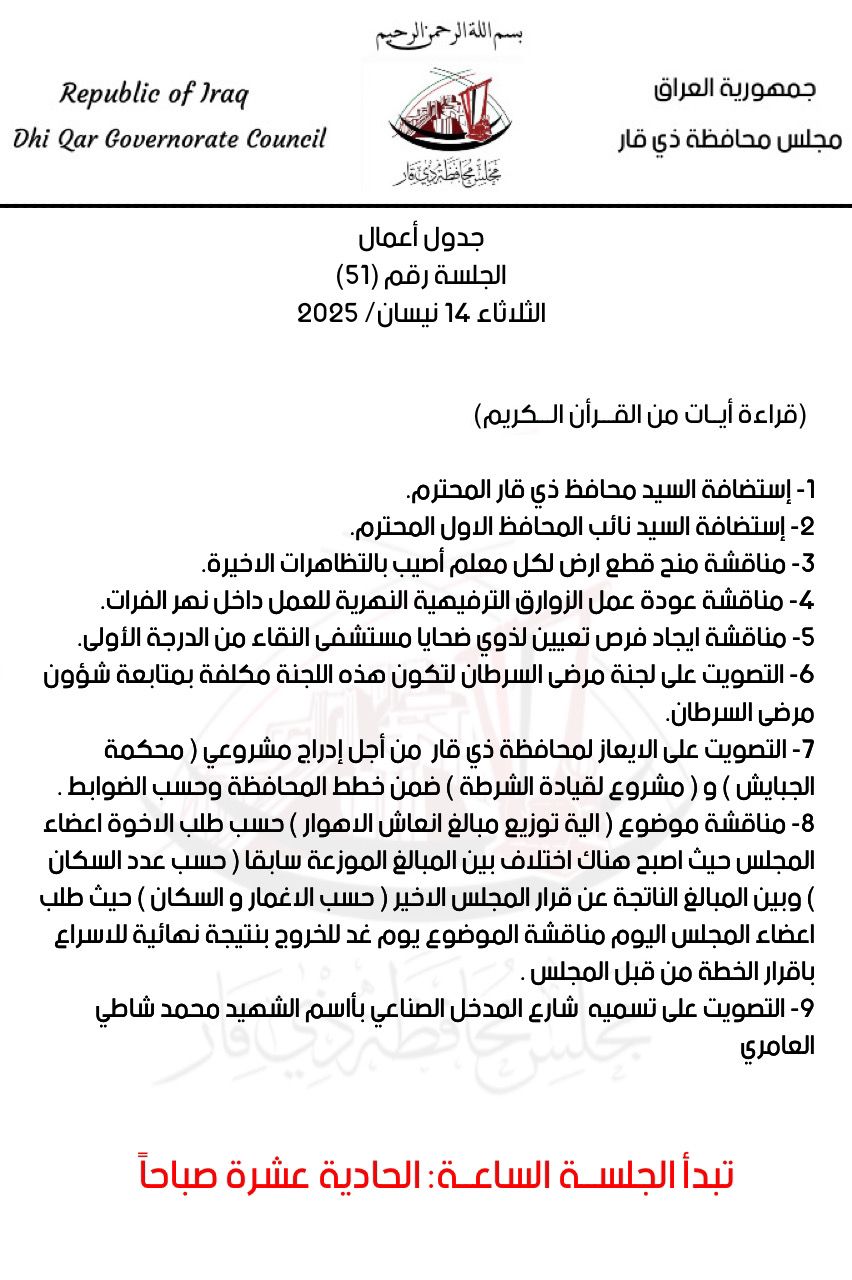 أخبار الناصرية قائمة بعدد من الملفات الخدمية على طاولة اجتماع مجلس ذي قار يوم غد الثلاثاء في 14/04/2025 صحيفة الناصرية الالكترونية: قائمة بعدد من الملفات الخدمية على طاولة اجتماع مجلس ذي قار يوم غد الثلاثاء. شارك هذا الموضوع: النقر للمشاركة على X (فتح في نافذة جديدة) X انقر للمشاركة على فيسبوك (فتح في نافذة جديدة) فيس بوك مرتبط أكمل القراءة