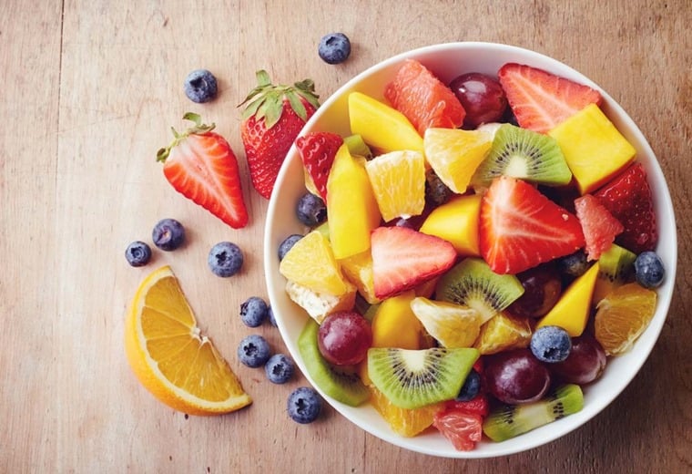 يوي غرانت بإدراج الفاكهة والخضراوات الطازجة في خططنا الغذائية. أطعمة مثل: الخس والبطيخ والطماطم غنية بالألياف، ما يساعد على الهضم وتجنب الإمساك في الأشهر الأكثر دفئًا، ويحافظ على توازن ميكروبيوم الأمعاء.