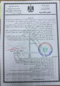 وبين انه تم تكليف المذكورين في الفقرة (١) أعلاه للعمل ضمن الهيئة الاستشارية في ديوان محافظة ذي قار لحين البت النهائي بشأنهم، ولا يجوز إعادة تنسيبهم إلى أي دائرة من دوائر الدولة كافة ما لم ترد التعليمات الصادرة، وبخلافه تتحمل الدائرة تبعات ذلك.