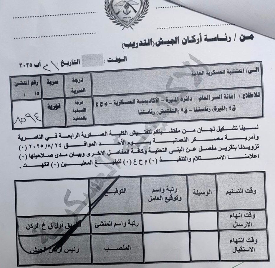 بالوثيقة…نقل الكلية العسكرية الرابعة في الناصرية