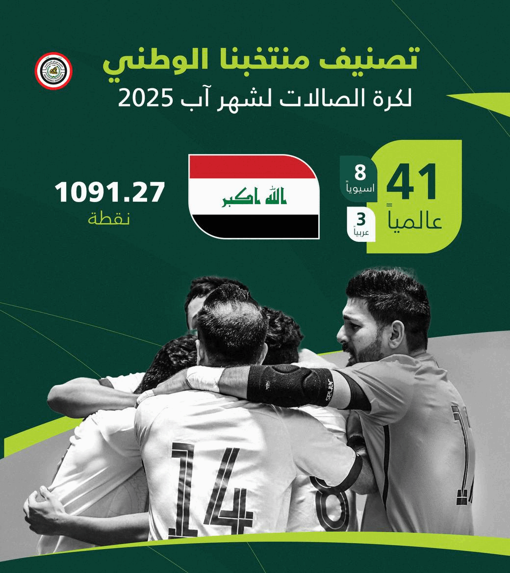 منتخب العراق لكرة الصالات يحتل المركز 41 عالمياً من أصل 139 منتخباً