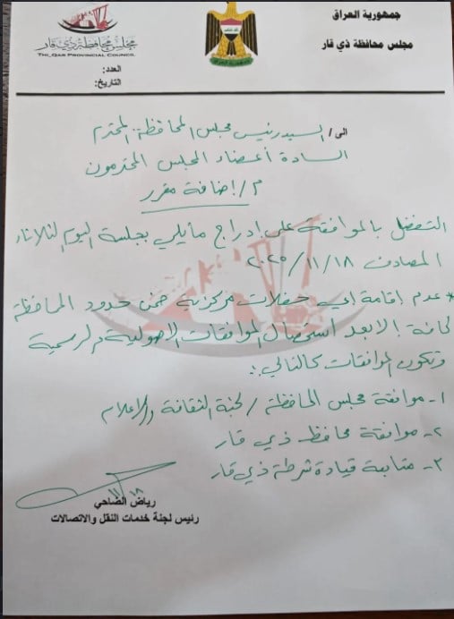 وذكر العتابي، بحسب وثيقة وردت لوكالة شفق نيوز، موجهة إلى رئاسة مجلس المحافظة، “نرجو التفضل بالموافقة على إدراج ما يلي في جلسة يوم الثلاثاء، على عدم إقامة أي فعاليات مركزية تخص حدود المحافظة لعدم استيفاء الموافقات الأصولية الكاملة وتكررت الملاحظات”.